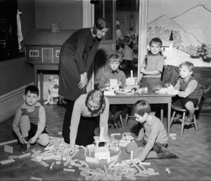 Studentparad från Vasaskolan, Gävle, 1980-tal. Under 1900-talet breddades rekryteringen till högre utbildning. (Foto från Länsmuseet Gävleborg)
